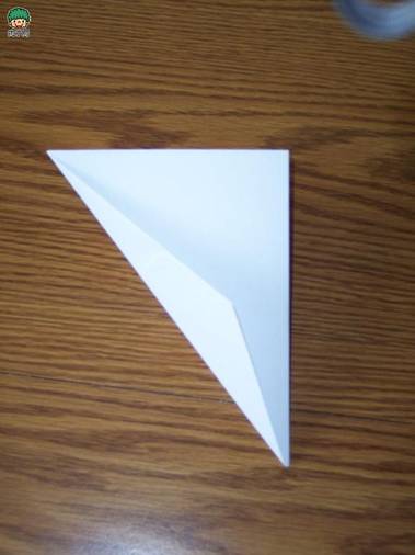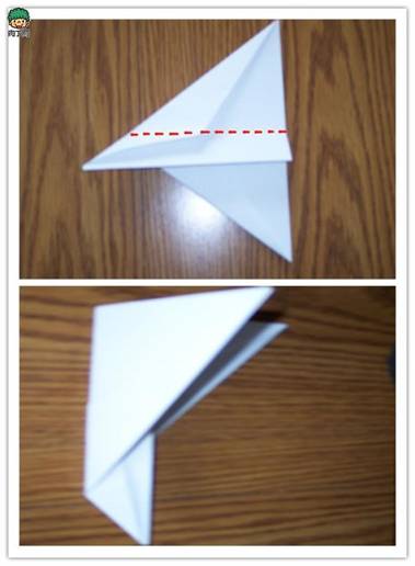 内部两翼的三角部分往内折,就是红圈所标的部分。然后翻至背面,内部两翼的三角部分也往内折