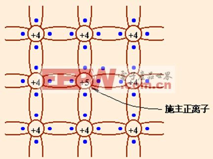 如果在纯硅中掺杂少许的砷或磷(最外层有5个电子),就会多出1个自由电子,这样就形成N型半导体,因五价杂质原子中只有四个价电子能与周围四个半导体原子中的价电子形成共价键,而多余的一个价电子因无共价键束缚而很容易形成自由电子,如图1所示。